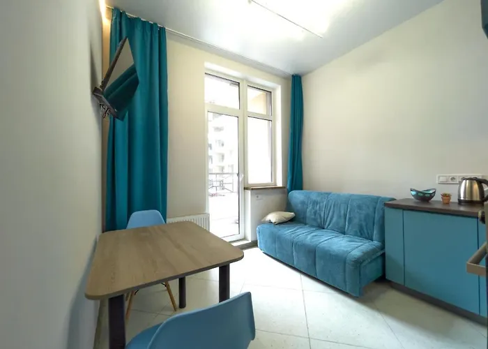 Obiekt noclegowy jest wyposażony w kuchenkę mikrofalową i lodówkę. Aby zapewnić gościom komfortowy pobyt, obiekt oferuje urządzenie do parzenia kawy/herbaty jako udogodnienia do samodzielnego przygotowywania posiłków. Restauracja Solo Restaurant serwuje dania kuchni europejskiej i znajduje się 350 metrów od obiektu. Obiekt jest usytuowany w mniej niż 300 metrach od przystanku Desiatoho Kvitnia Square.